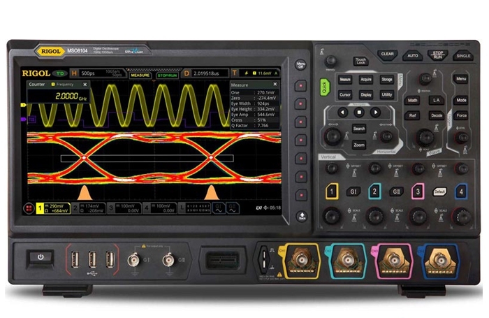 Цифровой осциллограф смешанных сигналов MSO8204 использует новейшую разработку компании Rigol - процессор "Phoenix", что обеспечивает частоту дискретизации в реальном времени до 10 Гвыб/с, а технология UltraVision 2 позволяет увеличить размер глубины записи до 500 М точек, скорость захвата осциллограмм до 600000 осц/с, а максимальный размер кадров при анализе осциллограмм - до 450000. В осциллографе MSO8204 имеется большой сенсорный дисплей, что наряду с традиционными органами управления на передней панели прибора делает пользовательский интерфейс простым и удобным, а также предоставляет возможность использовать зональный запуск.